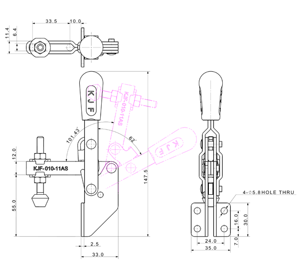 100 187 62˚ 101˚ M6 x 58.0L 34 U Short Angle Low